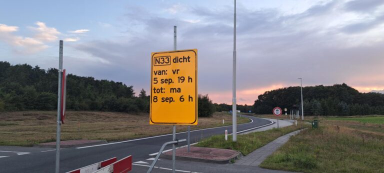 De N33 gaat dit weekend dicht voor onderhoud. Reizigers moeten rekening houden met omleidingen en extra reistijd.