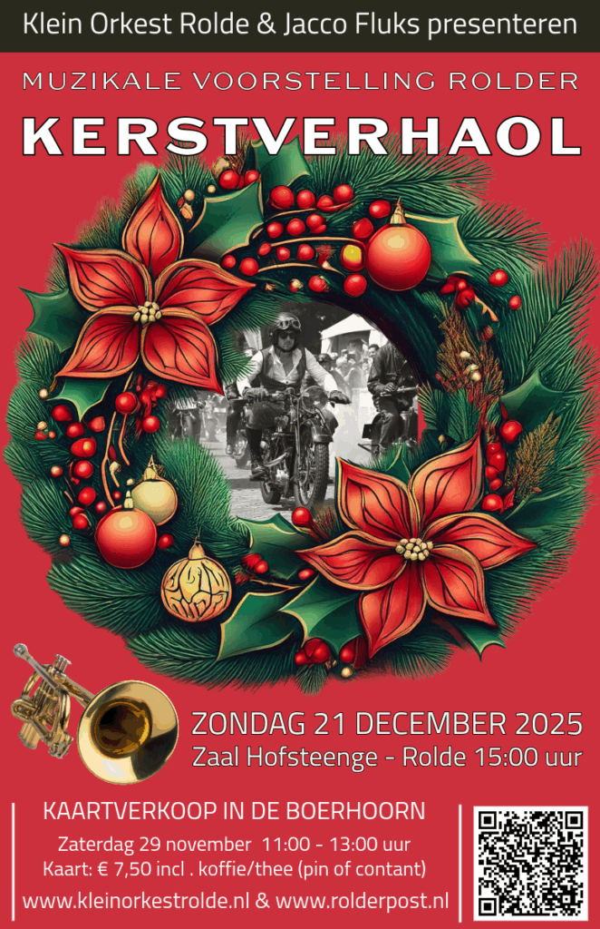 Het is inmiddels een traditie waar men in Rolde reikhalzend naar uitkijkt: het kerstconcert van Klein Orkest Rolde, met daarin het inmiddels befaamde Rolder Kerstverhaol. Wat ooit begon als een luchtig tussendoortje, is uitgegroeid tot een dorpsgebeuren waar de zaal steevast tot de laatste stoel gevuld is. Dit jaar staat de zesde editie op het programma – met als extra bijzonderheid dat het verhaal volledig in het teken staat van 100 jaar TT.