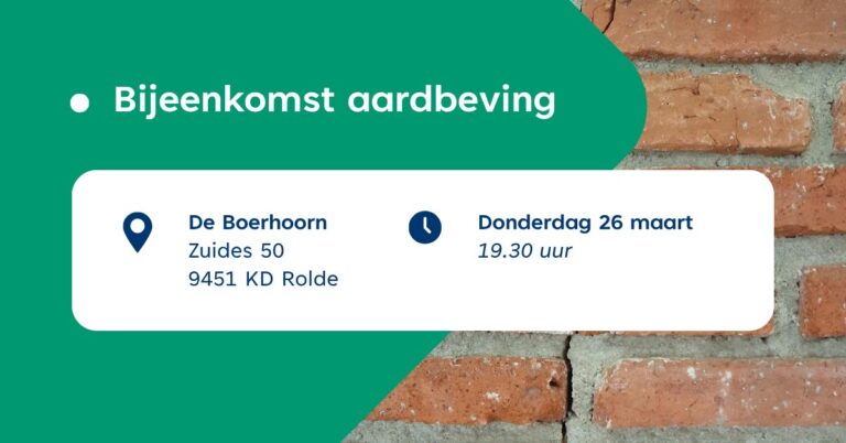 Gemeente Aa en Hunze houdt op 26 maart een bijeenkomst over de aardbeving, schade, zorgen en vragen van inwoners.