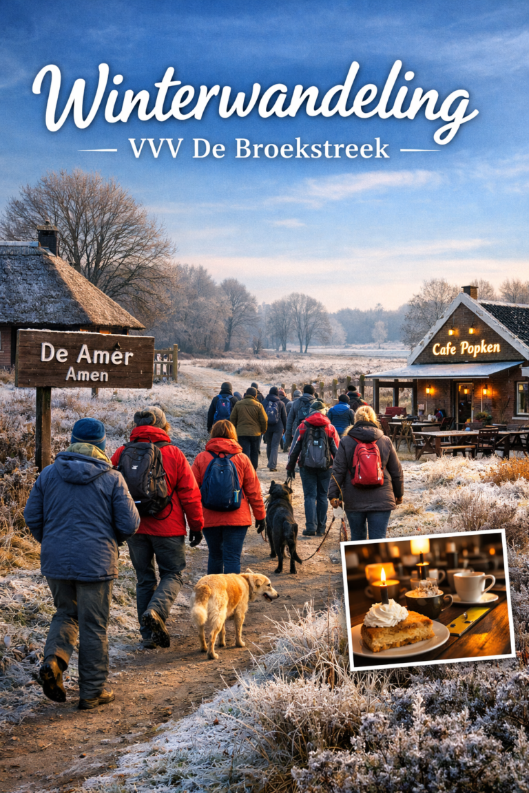 Op zondag 25 januari houdt VVV De Broekstreek een winterwandeling door het Drentse landschap rond Amen. Iedereen is welkom, ook honden.