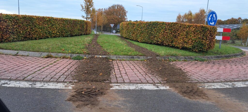 Omwonenden zeggen niets te hebben gehoord of gezien van het incident. Het is dan ook nog onduidelijk of het gaat om een bewuste actie of een ongeluk. De schade aan de rotonde is aanzienlijk: delen van de beplanting zijn platgereden en er ligt veel zand over de rotonde.