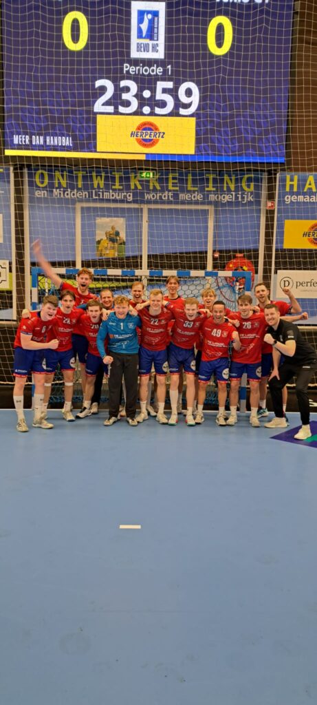 De rit naar Panningen is een zware, vooral omdat het zo vroeg is. Maar met de nodige koffie, het Pots lunchpakketje en versnaperingen stonden de heren toch monter en fris aan het begin van de wedstrijd. Monter en fris wil nog niet zeggen dat de keuzeheren van coach Henk Smeenge wakker waren, want de talenten van BEVO startten furieus. Unitas kwam in de beginfase op achterstand. De dekking was nog niet scherp en had de accu nog niet aangesloten om de broodnodige energie in de dekking te leveren. Unitas deed aanvallend zeker iets terug maar de afronding was onvoldoende. Dit kwam ook omdat de jonge Panningse doelman een aantal goede reddingen verrichte en dat eigenlijk de gehele wedstrijd door trok. Unitas trok pas na 10 minuten spelen de stand gelijk (4-4). De jonge onstuimig en enthousiast spelende talenten van BEVO dwongen het bewustzijn af dat er door Unitas veel energie in de dekking moest worden gelegd om de scoringsdrift te stoppen. En dat deed de ploeg van Henk Smeenge. Er werden veel vuile meters’ afgelegd om vervolgens het fysieke voordeel te benutten en de aanvallen in de kiem te smoren. Na een korte fase van stuivertje wisselen loonde het harde werken. De schoten konden steeds meer onschadelijk worden gemaakt door de wederom uitstekend keepende Jarno Paasman en ballen konden worden onderschept en gestolen. De omschakelingsmachine kwam weer op stoom. Met name de spelers op de rechterflank van Unitas wisten hiervan te profiteren. Harm Meijer, Nawid Karimi-Zand, Chris Schutter en Bart Mik waren bijzonder effectief en behaalden een hoog scoringspercentage. Harm Meijer speelde een uitstekende wedstrijd als opbouwer en werd met 8 doelpunten zelfs topscorer van de wedstrijd. De linkerflank had er iets meer moeite mee, maar ook daar kwamen scores door. Unitas nam na ruim 22 minuten spelen eindelijk afstand (7 -10) en liep vervolgens dankzij een uitstekend functionerende dekking met een 0 – 5 run uit naar een ruststand van 9 – 15.