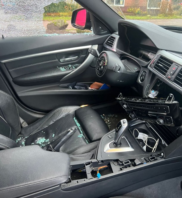 Destijds sloegen onbekenden toe door een ruit in te tikken en binnen enkele minuten het interieur volledig te strippen. Een complete ravage bleef achter. Ook op een andere plek in Rolde werd toen een vergelijkbare BMW geplunderd.