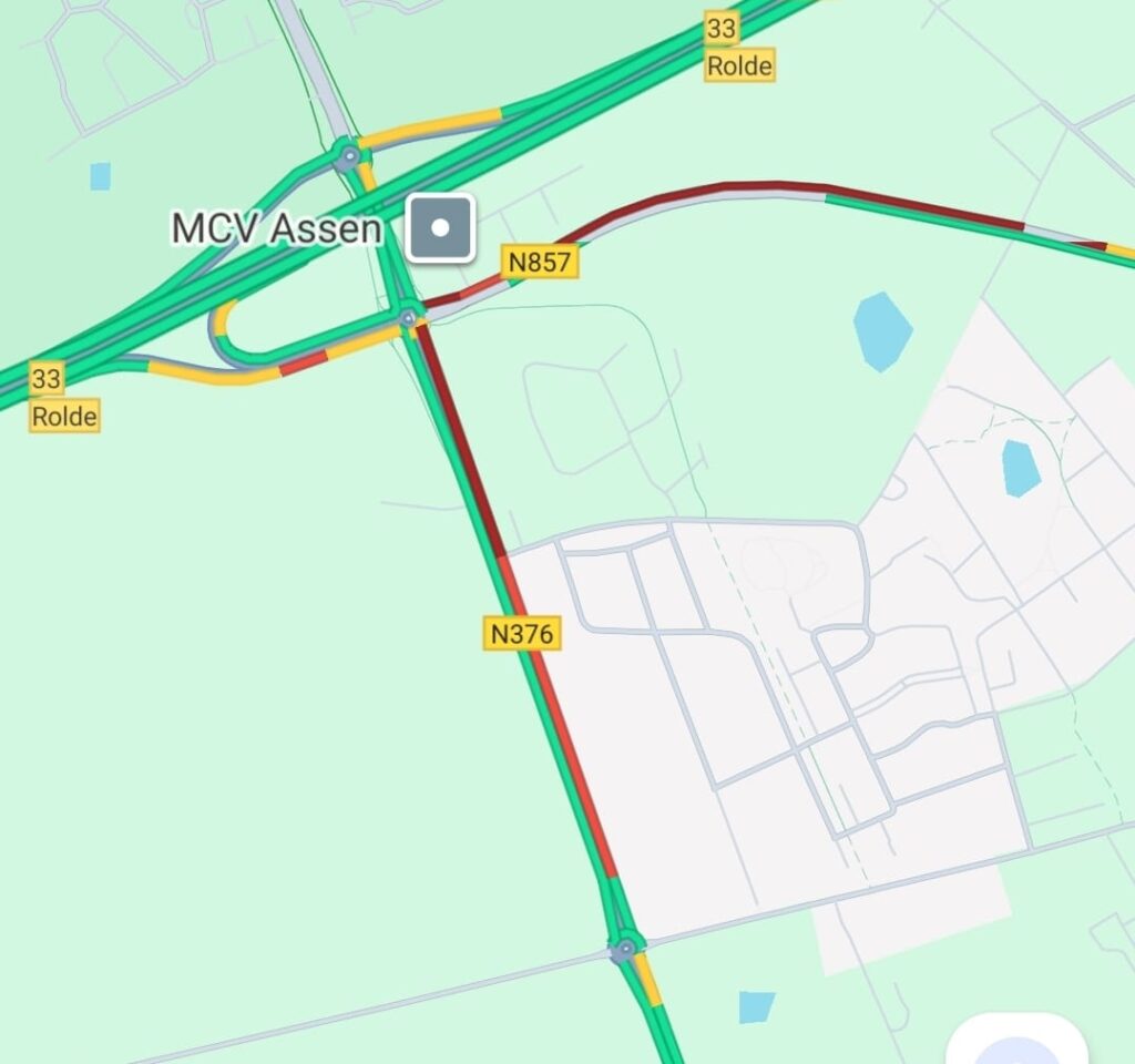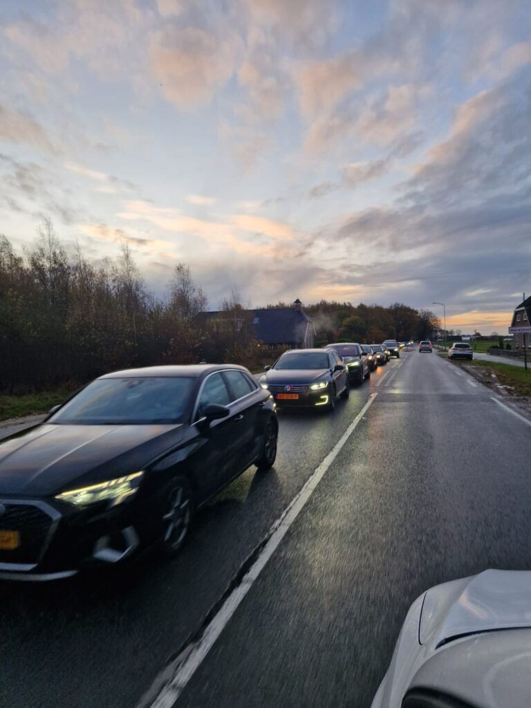 Vanaf de dorpen rollen de files langzaam richting de opritten, en door de omleiding loopt de drukte verder op. Ook rond Gieten is het compleet drama: aansluitende rijen auto’s en veel gefrustreerde weggebruikers die nauwelijks vooruitkomen.