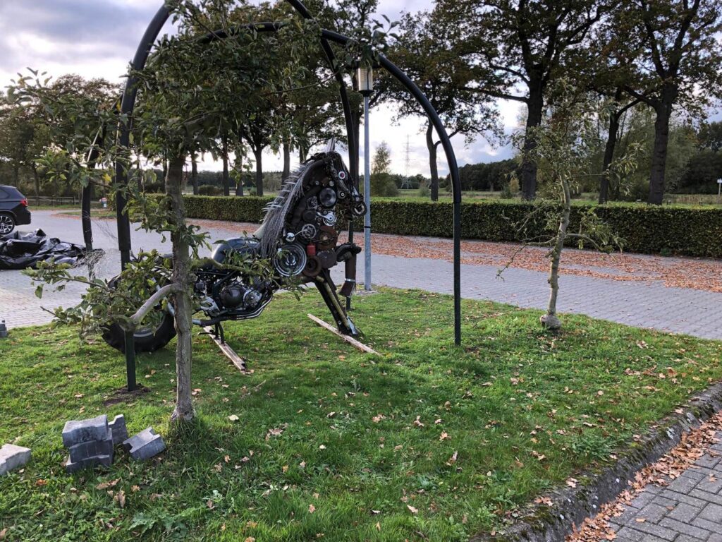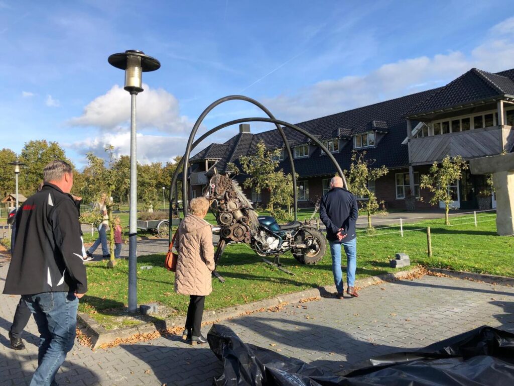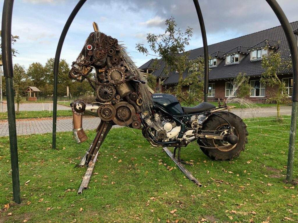NIJLANDE/ELDERSLOO – De trotse buurtvereniging Nijlande-Eldersloo, winnaar van de Praalwagenparade tijdens de afgelopen Roldermarkt, heeft haar creatie een bijzonder tweede leven gegeven. Het indrukwekkende ‘paard’ van hun winnende wagen schittert voortaan als blijvend kunstwerk bij Hippisch Centrum Sunrise Stables in Assen.