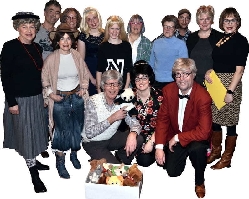FOTO: https://toggrolloo.nl/ met de toneelspelers in 2025: staand vlnr: Johanna Bilker; Roelof Kiers; Jeanette Smit; Wilma Kiers; Marjolein Kroeze; Tessa Schamper (gastrol); Ina Reinders; Carla Regeer; Gert-Jan Hietbrink; Renate Greveling; Saskia Reitsema