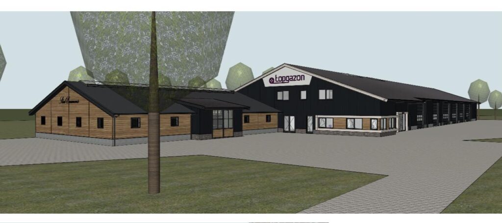 Topgazon levert graszoden voor tuinen, sportvelden en openbare ruimtes. Klanten kunnen straks bij het nieuwe pand nog makkelijker met auto en aanhanger terecht om graszoden af te halen. Bezorgen blijft natuurlijk ook mogelijk. Naast kantoorruimte zal er in het nieuwe gebouw ruimte zijn voor de opslag van graszaad, meststoffen, machines én paarden.