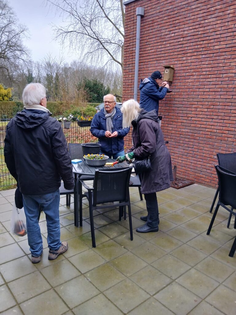 Daarnaast werd er gesnoeid, geharkt en blad opgeruimd. Als extra toevoeging werden er vogelhuisjes opgehangen, wat zorgt voor meer leven rondom het gebouw.